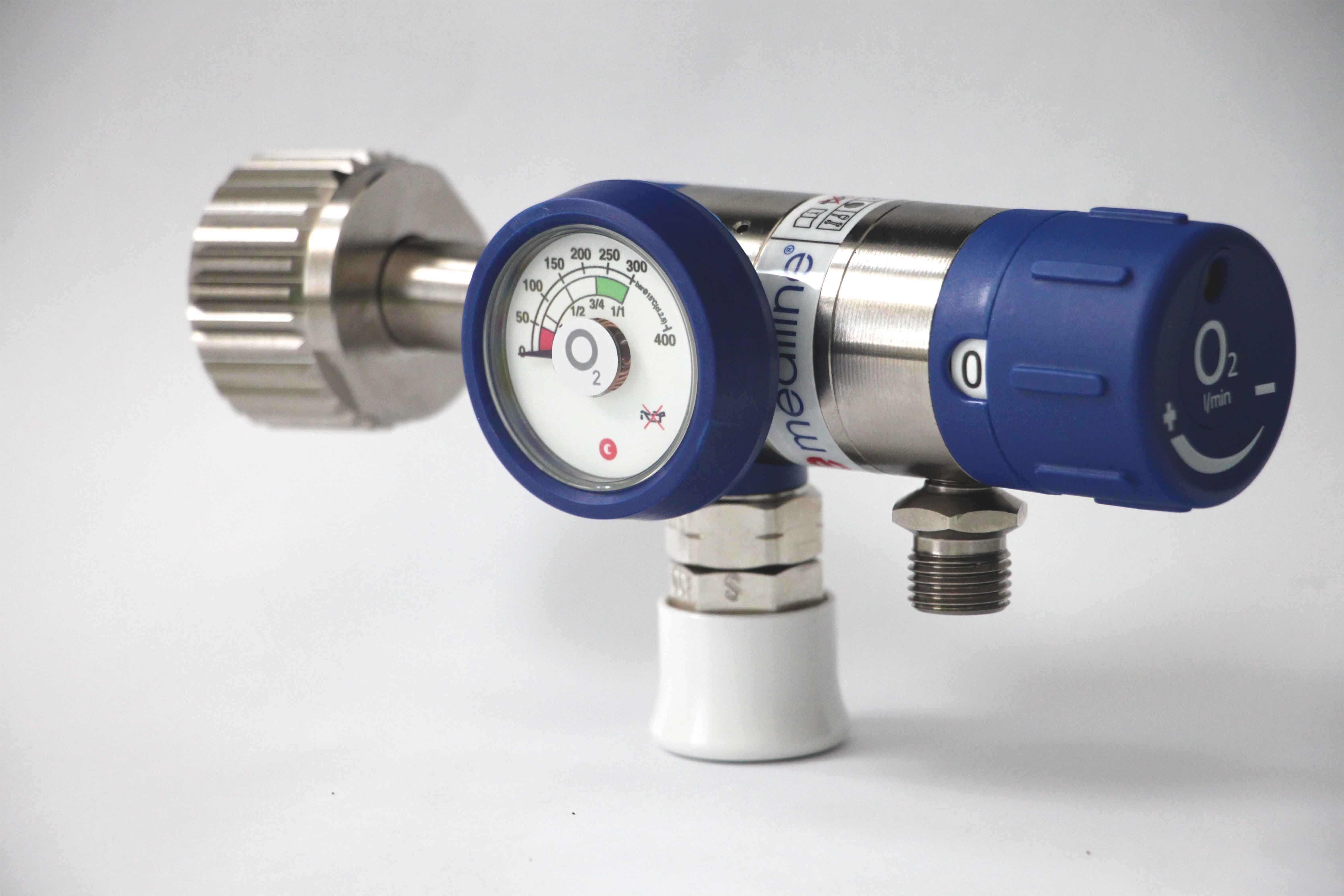 GCE医疗已有多种200bar进气形式的Mediselect及Medireg II减压器,现在我们拓展产品范围至新的300bar进气形式的氧气减压器。